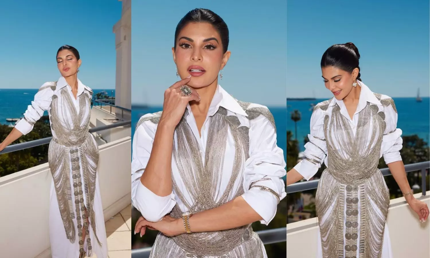 इसके अलावा जैकलीन का तीसरा लुक भी खूब चर्चा में रहा, जिसमें उन्होंने सफेद शर्ट, स्ट्रेट-फिट पैंट्स और एक गिल्डेड कोर्सेट पहना था। इस कोर्सेट में चमकदार आभूषण और प्लंजिंग नेकलाइन थी, जो उनके पूरे लुक को रॉयल बना रही थी।