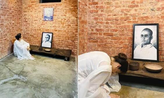 कंगना ने जेल के अहाते की तस्वीर भी साझा की है। जिस जेल में सावरकर को रखा गया था, उसके बाहर एक पट्टिका लगी है, जिस पर लिखा है कि विनायक दामोदर सावरकर इस कोठरी में 1911 से 1921 तक रहे थे। इन तस्वीरों को साझा करते हुए कंगना ने लिखा-'आज अंडमान द्वीप के पोर्ट ब्लेयर में स्थित काला पानी सेल्युलर जेल में वीर सावरकार सेल गई तोअंदर तक हिल गयी। जब अमानवता अपने चरम पर थी, सावरकर जी के रुप में मानवता शीर्ष पर थी और उन्होंने आंखों में आंखें डालकर हर क्रूरता का मुकाबला प्रतिरोध और दृढ़ निश्चय से किया।