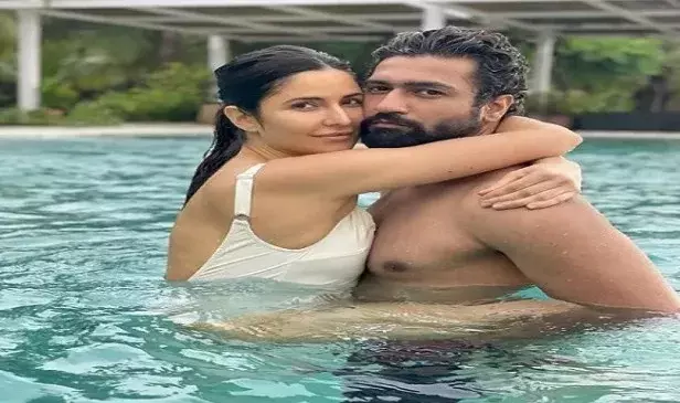 |मुंबई। बॉलीवुड के फेमस सेलिब्रिटी कपल कटरीना कैफ और विक्की कौशल की एक तस्वीर इस वक्त सोशल मीडिया पर छाई हुई है।इस तस्वीर में कटरीना और विक्की स्वीमिंग पूल में रोमांटिक अंदाज में पोज देते नजर आ रहे हैं।