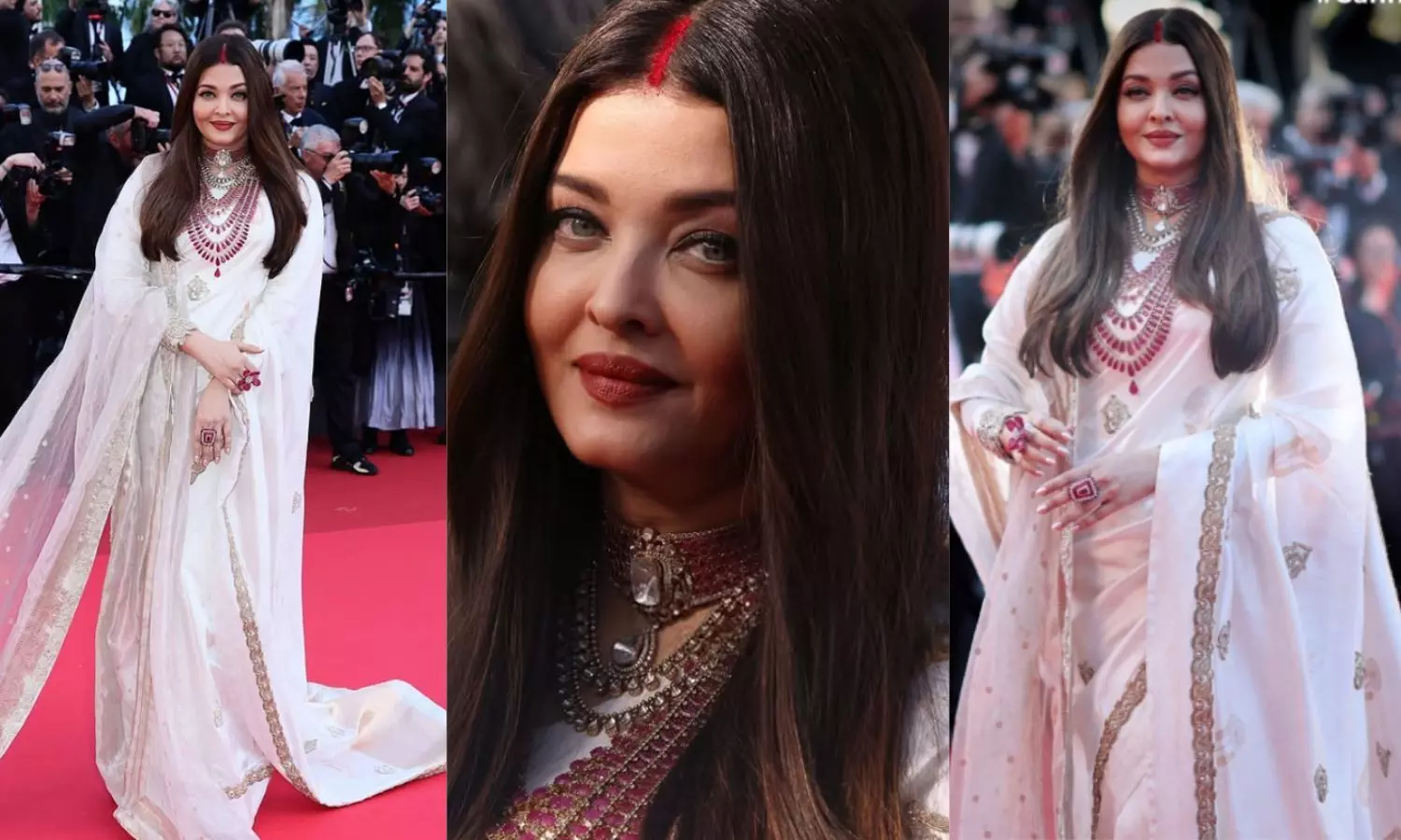|ऐश्वर्या राय का कान्स लुक सोशल मीडिया पर वायरल, देंखे एक्ट्रेस का शाही अंदाज। व्हाइट बनारसी साड़ी और सिंदूर में ऐश्वर्या ने दिखाया जलवा