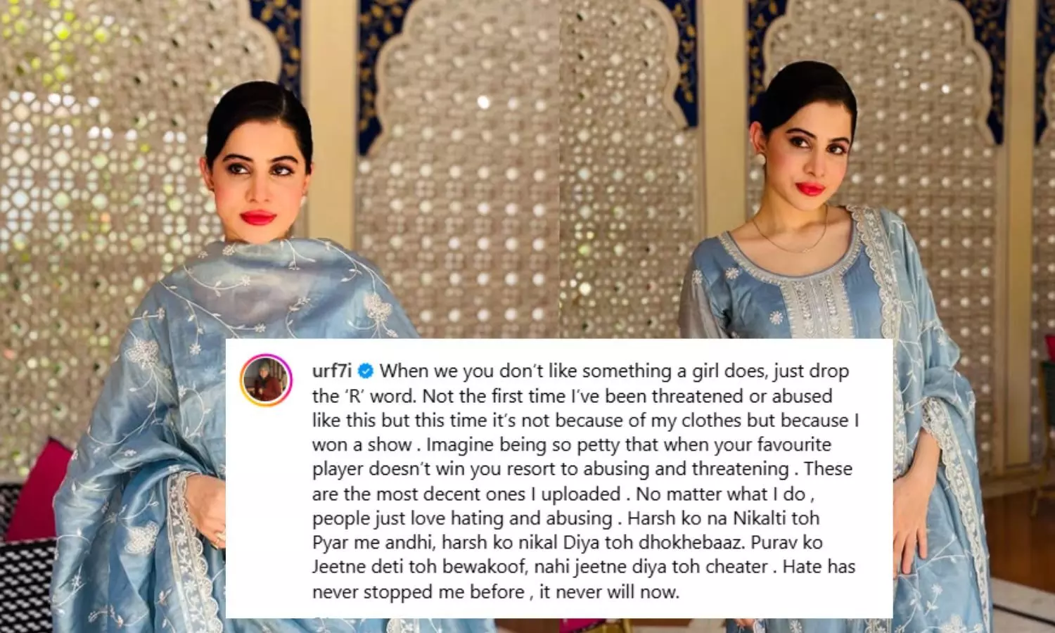 उर्फी जावेद ने इस शो में शानदार गेम खेला और विनर बनी, लेकिन कुछ लोगों को यह बात पसंद नहीं आई। सोशल मीडिया पर उर्फी को अपशब्द और धमकियां दी गई। इस पर उर्फी ने इंस्टाग्राम पर स्क्रीनशॉट शेयर किए और लिखा,"अब मुझे मेरे कपड़ों के लिए नहीं, बल्कि एक शो जीतने के लिए गालियां मिल रही है। लोग अगर पसंदीदा कंटेस्टेंट नहीं जीतता, तो दूसरे को गालियां देने लगते है। लेकिन मैं न पहले रुकी थी, न अब रुकूंगी।"