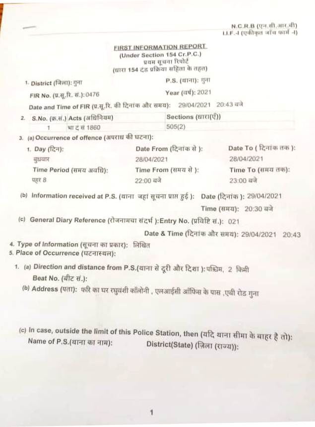 गुना। एक न्यूज चैनल को मंत्री के खिलाफ फर्जी खबर चलना महंगा पड़ गया। चैनल के हेड और उसके कार्यक्रम में भाग लेने वाले अतिथि के खिलाफ छवि खराब करने के मामले में एफआईआर दर्ज कर ली गई है। दरअसल, बीते दिनों डिजियाना न्यूज चैनल ने अपने एक डिबेट कार्यक्रम में मंत्री मंत्री और बमोरी से विधायक महेंद्र सिंह सिसोदिया को लकर एक खबर प्रसारित की थी।