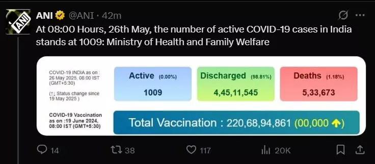 जानकारी के मुताबिक, केरल में 335 नए मामले सामने आए, जिसके साथ ही कुल सक्रिय मामले 430 हो गए, जबकि महाराष्ट्र और दिल्ली में क्रमशः 153 और 99 नए मामले सामने आए। सोमवार (26 मई) सुबह सरकार द्वारा जारी आंकड़ों के अनुसार, महाराष्ट्र और दिल्ली में सक्रिय कोविड-19 मामले अब क्रमशः 209 और 104 हैं।