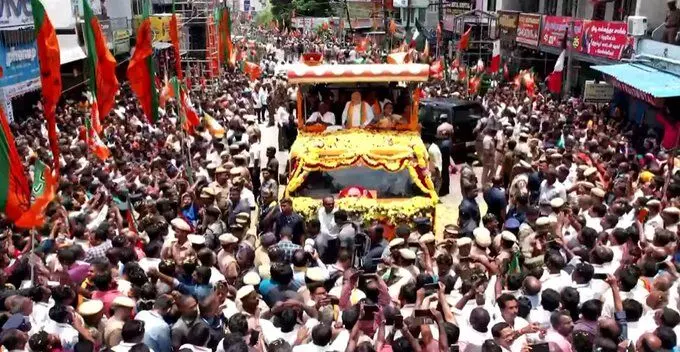 गृहमंत्री अमित शाह ने कन्याकुमारी में किया रोड शो, जमकर उमड़ी भीड़