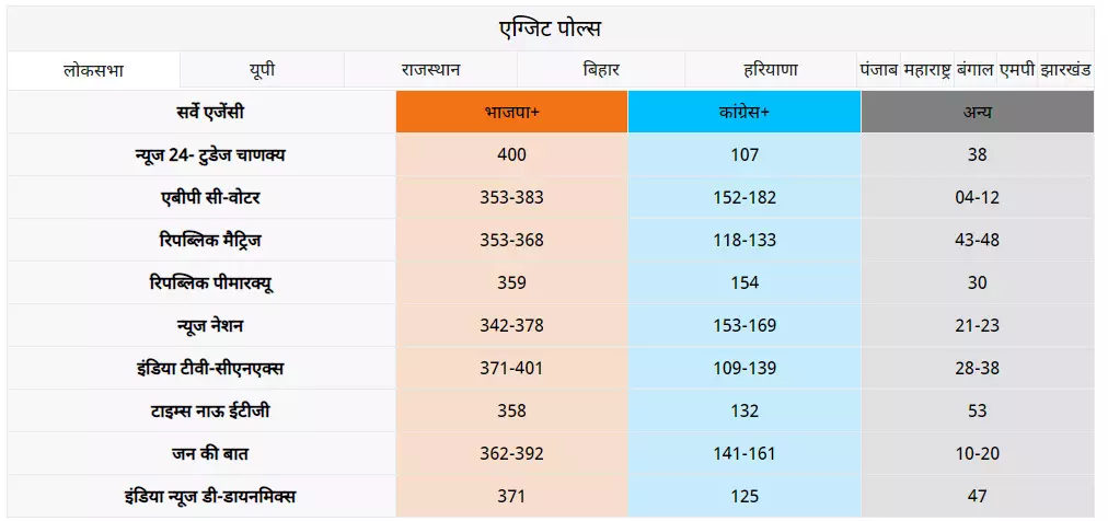 लोकसभा चुनाव 2024 के एक्जीट पोल