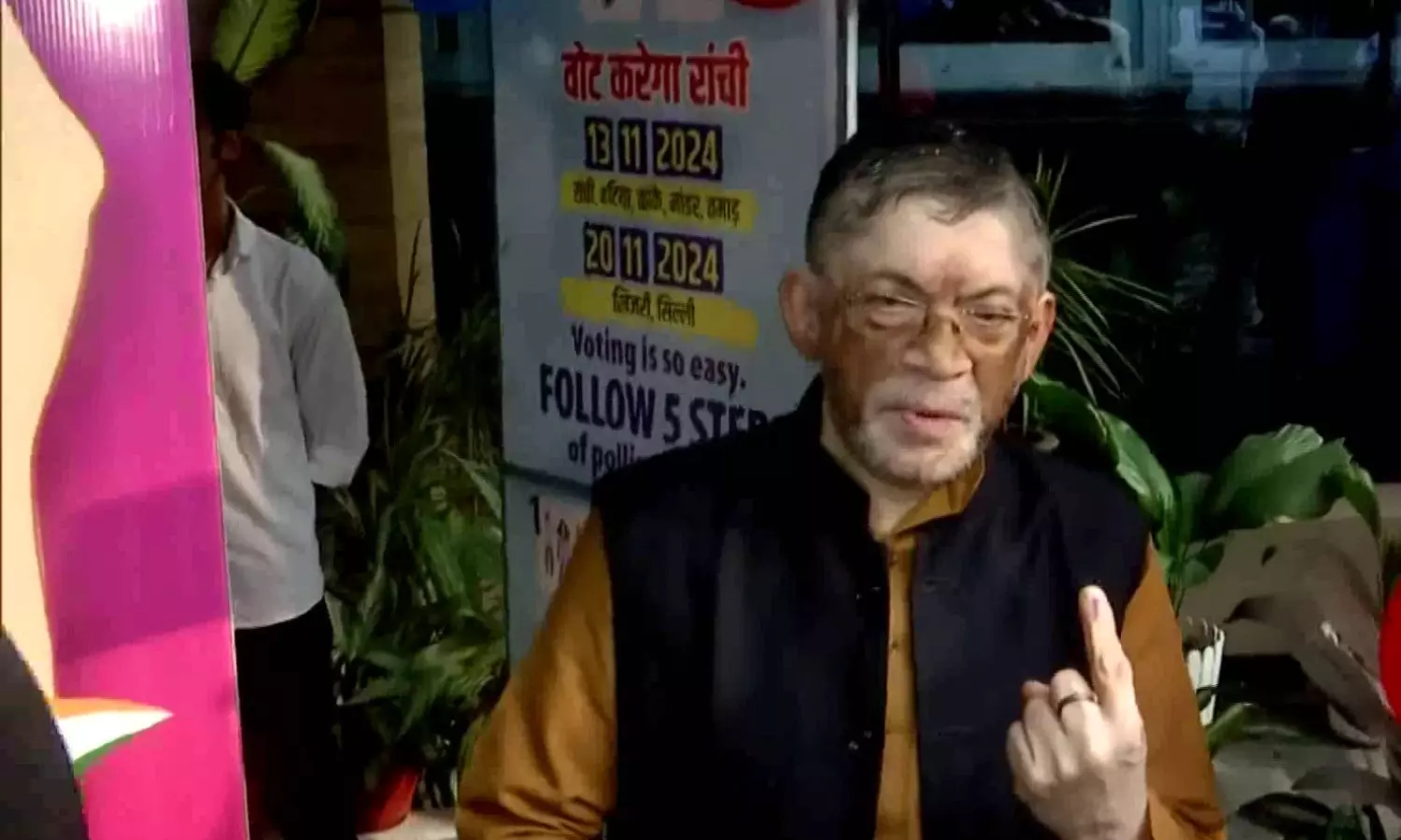 रांची: झारखंड के राज्यपाल संतोष कुमार गंगवार ने Jharkhand Assembly Elections 2024 के लिए वोट डालने के बाद अपनी स्याही लगी उंगली दिखाई।