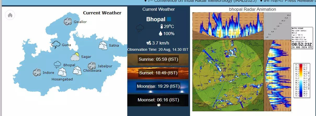मध्य प्रदेश में दो महीने के अंदर प्रदेश में 75% यानी, एवरेज 28.3 इंच बारिश हुई है, मानसून ट्रफ, चक्रवाती परिसंचरण और पश्चिमी विक्षोभ सहित मौजूदा मौसम प्रणालियाँ गरज और बारिश के लिए एक मजबूत सेटअप बना रही हैं। इससे अगले चार दिनों में पूरे राज्य में भारी बारिश होने की उम्मीद है।
