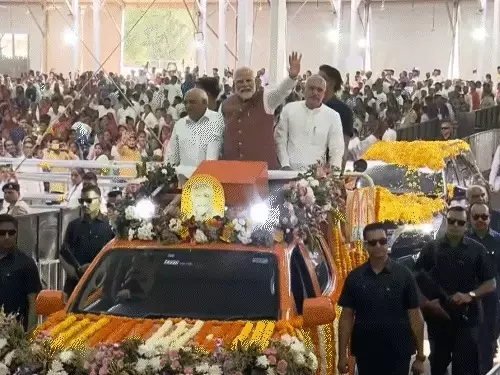 इससे पहले प्रधानमंत्री देवमोगरा मंदिर पहुंचे। पंडोरी माता की पूजा की। यहां यह देवी कई राज्यों के आदिवासी समुदाय की कुलदेवी मानी जाती है। मंदिर के बाद उन्होंने चार किलोमीटर लंबा रोड शो किया। सड़क किनारे आदिवासी समुदाय के हजारों लोग खड़े थे। बच्चों ने पारंपरिक नृत्य किया, कई महिलाएं रंगीन वेशभूषा में तालियां बजाती रहीं। बाद में पीएम ने करीब 9700 करोड़ रुपए की परियोजनाओं का उद्घाटन और शिलान्यास किया।
