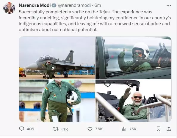 प्रधानमंत्री मोदी ने स्वदेशी लड़ाकू विमान तेजस में भरी उड़ान