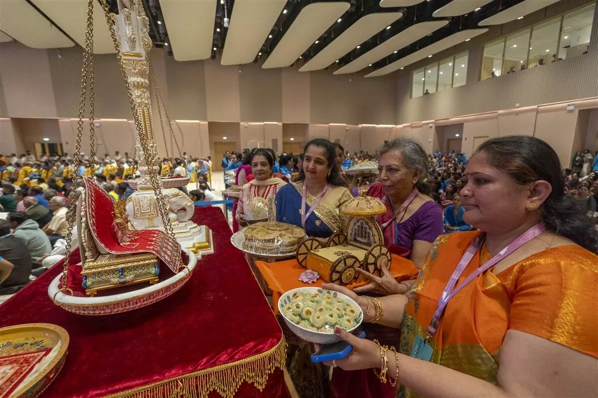 - मंदिर के मध्य खंड में स्वामी नारायण के विग्रह की प्राण प्रतिष्ठा हुई ।