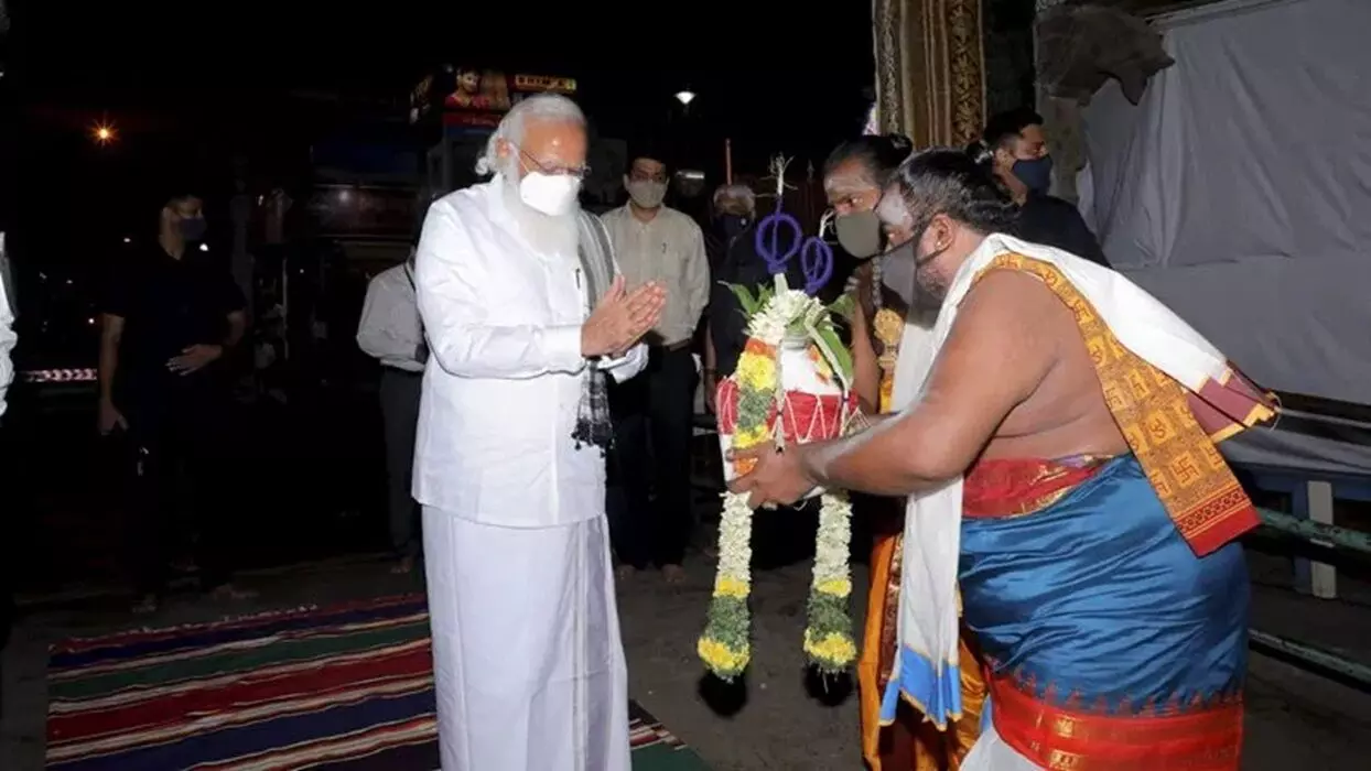पुजारियों ने प्रधानमंत्री मोदी का यहां पारंपरिक तरीके से स्वागत किया। प्रधानमंत्री ने मंदिर में हुए भजन कार्यक्रम में भी हिस्सा लिया। तमिलनाडु के रामनाथपुरम जिले के रामेश्वरम द्वीप पर स्थित शिव मंदिर का संबंध रामायण से भी है। ऐसा कहा जाता है कि भगवान राम ने यहां शिवलिंग स्थापित किया था। भगवान राम और देवी सीता ने यहां पूजा की थी। तिरुचिरापल्ली जिले में श्री रंगनाथस्वामी मंदिर में पूजा करने के बाद मोदी वायुसेना के हेलीकॉप्टर से यहां पहुंचे थे।
