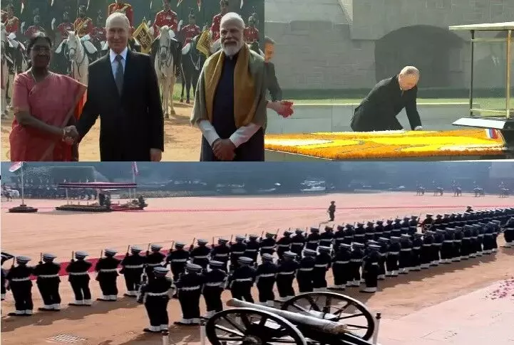 रूस के राष्ट्रपति व्लादिमीर पुतिन का चार साल बाद भारत आगमन भव्य तरीके से हुआ 4 दिसंबर को पुतिन दिल्ली के पालम एयरपोर्ट पर लैंड हुए, जहां प्रधानमंत्री नरेंद्र मोदी ने उन्हें गले लगाकर गर्मजोशी से स्वागत किया। इस अवसर पर पीएम मोदी ने पुतिन के सम्मान में प्राइवेट डिनर का आयोजन भी किया। राष्ट्रपति भवन में पुतिन का औपचारिक स्वागत किया गया और उन्हें 21 तोपों की सलामी दी गई। समारोह में विदेश मंत्री डॉ. एस जयशंकर, दिल्ली के LG वीके सक्सेना, CDS जनरल अनिल चौहान सहित अन्य गणमान्य लोग मौजूद रहे।