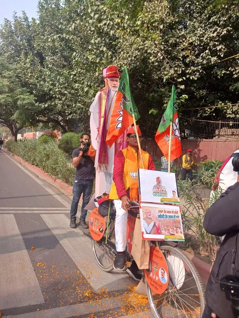 |भारतीय जनता पार्टी के प्रवक्ता केके शर्मा ने आज कहा कि पार्टी मध्य प्रदेश, राजस्थान और छत्तीसगढ़ में भारी जीत की ओर बढ़ रही है। रुझानों में तीनों राज्यों में पार्टी ने निर्णायक बढ़त ले ली है और सरकार बनाने जा रही है। यह जीत स्पष्ट तौर पर मोदी द्वारा दी गई गारंटी की जीत है। वह पार्टी मुख्यालय में पत्रकारों से बातचीत कर रहे थे।