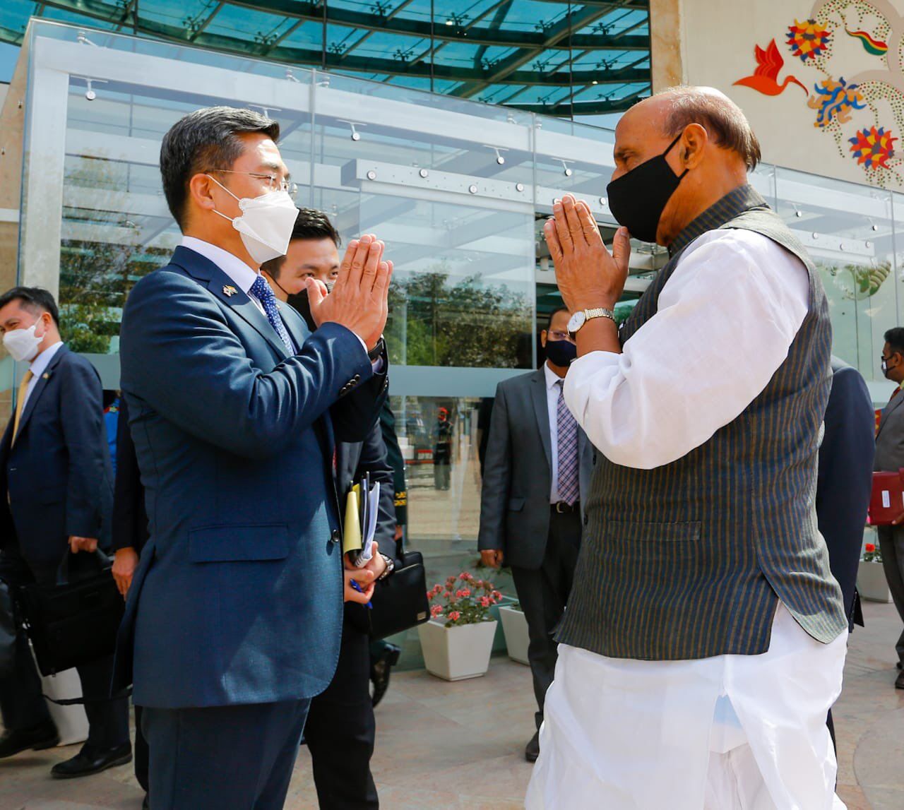 रक्षा मंत्री राजनाथ सिंह ने कहा कि कोरिया गणराज्य के रक्षा मंत्री सुह वुक के साथ उत्कृष्ट विचार-विमर्श हुआ। हमने भारत और आरओके के बीच रक्षा सहयोग को मजबूत करने और आगे बढ़ाने के तरीकों पर चर्चा की। राजनाथ सिंह और सुह वुक ने स्वीकार किया कि द्विपक्षीय रक्षा सहयोग ने त्रि-सेवा के साथ-साथ रक्षा प्रौद्योगिकी और उद्योग से संबंधित एजेंसियों के पैमाने और दायरे में काफी विस्तार किया है। दोनों मंत्रियों ने रक्षा और सुरक्षा कार्यों के साथ-साथ दोनों राष्ट्रों के सशस्त्र बलों द्वारा किए गए सर्वोत्तम अभ्यासों पर कोविड-19 महामारी के प्रभाव पर विचारों का आदान-प्रदान किया। प्रतिनिधिमंडल के बीच द्विपक्षीय सैनिक सहयोग और अन्य क्षेत्रीय, वैश्विक मामलों पर भी बातचीत हुई।