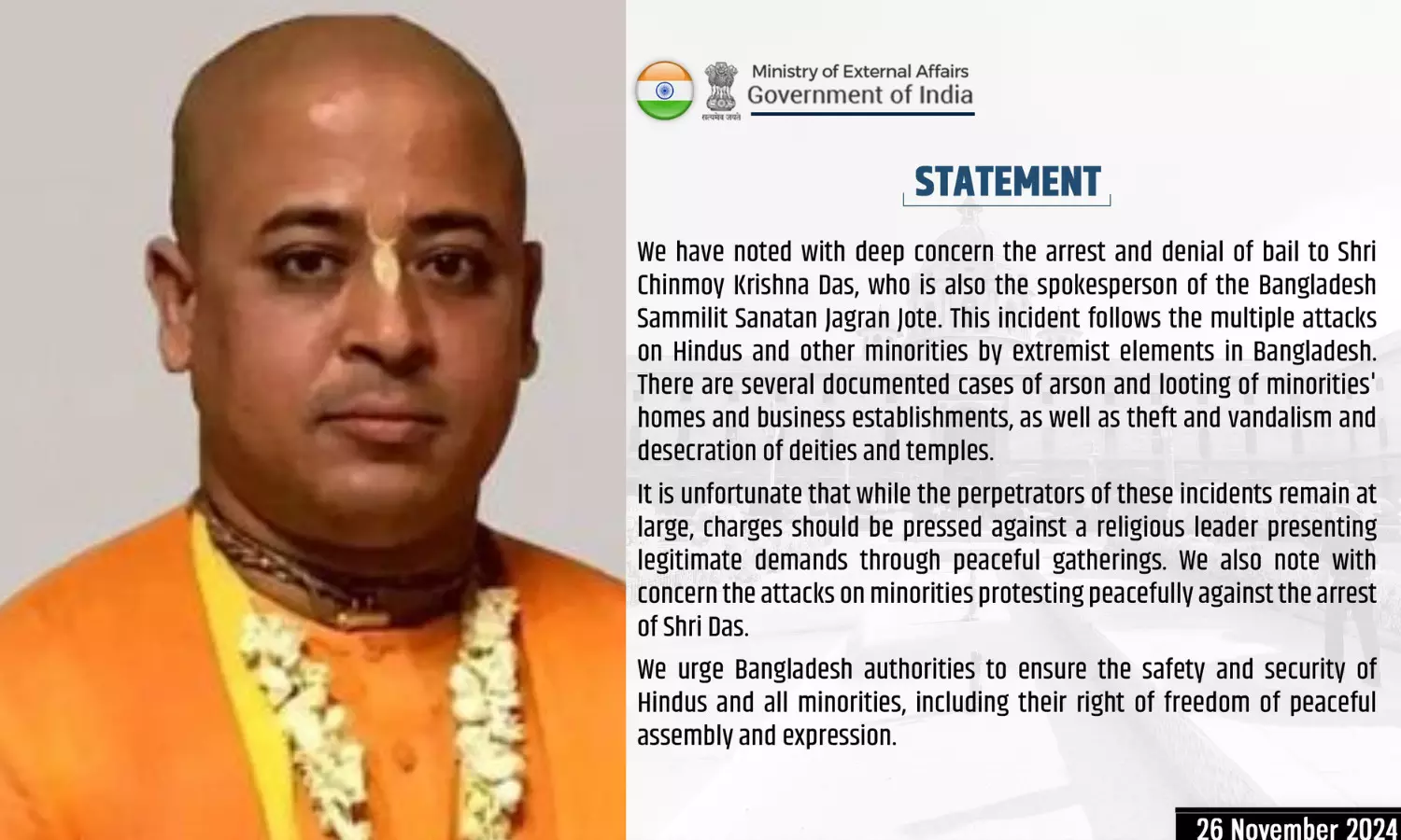 ISKCON धार्मिक गुरु चिन्मय प्रभु की गिरफ्तारी: भारत नाराज, कहा- अपराधी अभी भी खुलेआम घूम रहे...मंदिरों को अपवित्र किया जा रहा