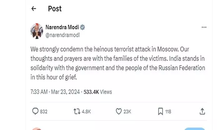 इस्लामिक स्टेट ने ली मॉस्को में आतंकी हमले की जिम्मेदारी, प्रधानमंत्री मोदी ने की निंदा