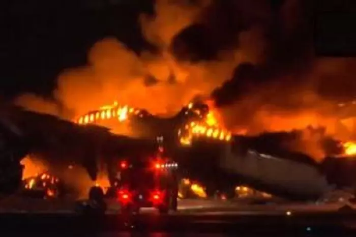 जापान में रन-वे पर दो विमान टकराए, लगी आग, एक के सभी 379 यात्री सुरक्षित, दूसरे के चालक दल के पांच सदस्यों की मौत