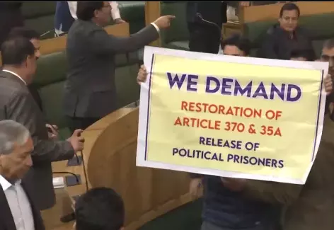 जानकारी के अनुसार, इंजीनियर रशीद के भाई और अवामी इत्तेहाद पार्टी के विधायक खुर्शीद अहमद शेख द्वारा अनुच्छेद 370 पर एक बैनर दिखाए जाने पर हंगामा मचने के बाद भाजपा विधायकों ने जम्मू-कश्मीर विधानसभा में नारे लगाए। विपक्ष के नेता सुनील शर्मा ने बैनर प्रदर्शन पर आपत्ति भी जताई।