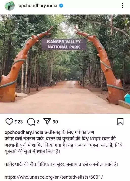 Kanger Valley: यूनेस्को की लिस्ट में शामिल हुआ कांगेर वैली, वित्त मंत्री ओपी चौधरी बोले- ये गर्व का क्षण