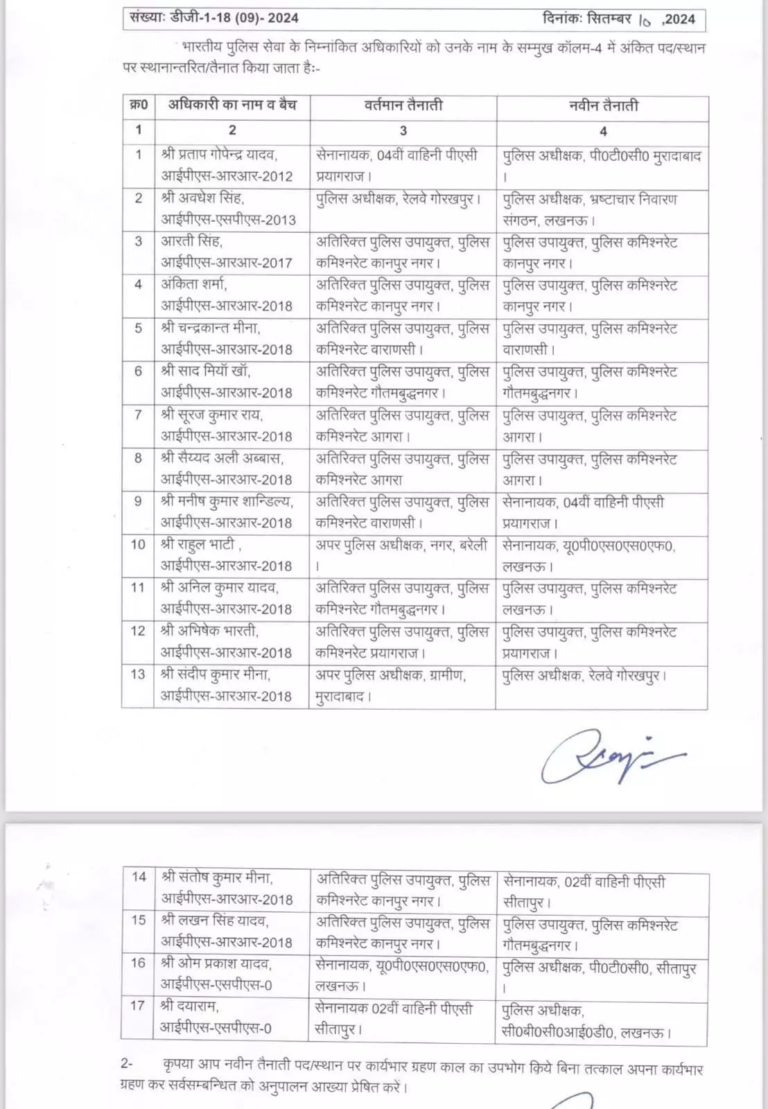 |UP IPS Transfer : उत्तरप्रदेश में 17 आईपीएस अधिकारियों का तबादला किया गया है।