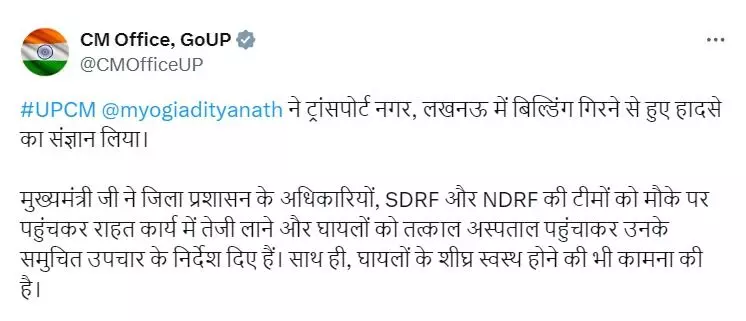 मुख्यमंत्री योगी आदित्यनाथ (Chief Minister Yogi Adityanath) ने इस हादसे पर तुरंत संज्ञान लिया और एनडीआरएफ तथा एसडीआरएफ की टीमों को मौके पर भेजा है। मुख्यमंत्री ने अधिकारियों को राहत कार्य में तेजी लाने और घायलों को उचित उपचार देने के निर्देश दिए हैं। उन्होंने घायलों के शीघ्र स्वस्थ होने की कामना भी की है।