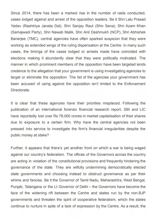 जिस तरीके से विपक्ष के प्रमुख नेताओं को टारगेट किया जा रहा है, उससे इस आरोप को बल मिलता है कि आपकी सरकार जांच एजेंसियों की मदद लेकर विपक्ष काे खत्म करने की कोशिश कर रही है। जिन एंजेसियों का दुरुपयोग करने का आपकी सरकार पर आरोप लगता है उसमें ED अकेली नहीं है।