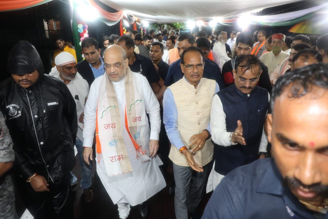 |भोपाल। केंद्रीय गृहमंत्री अमित शाह रविवार रात भोपाल पहुंच चुके हैं। स्टेट हेंगर पर सीएम शिवराज सिंह चौहान ने उनका स्वागत किया। यहां वे मध्य प्रदेश, उत्तर प्रदेश, उत्तराखंड और छत्तीसगढ़ के मुख्यमंत्री सहित वरिष्ठ अधिकारियों के साथ बैठक लेंगे। ये दैर सुबह से शाम तक विभिन्न कार्यक्रमों में के साथ जारी रहेगा।