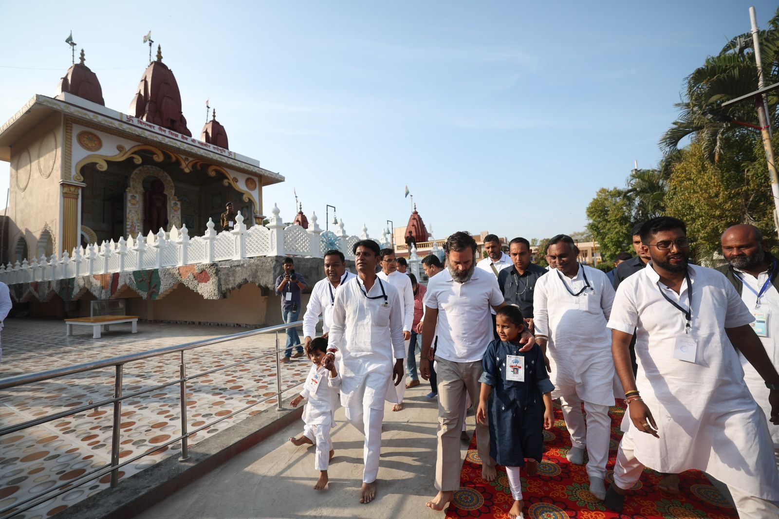 भारत जोड़ो यात्रा का मध्यप्रदेश में आज सातवां दिन है। यात्रा मंगलवार सुबह इंदौर जिले के सांवेर से शुरू होकर ग्राम निरोरा पहुंची और यहां लंच ब्रेक लिया। ब्रेक के बाद दोपहर में यात्रा पुनः शुरू होकर जैन तीर्थ तपोभूमि पहुंची, जहां राहुल गांधी भगवान महावीर के दर्शन किए और आचार्य प्रज्ञा सागरजी महाराज से मुलाकात कर उनका आशीर्वाद लिया। यहां उन्होंने कीर्ति स्तंभ का लोकार्पण भी किया। यहां राहुल गांधी और अन्य नेताओं ने स्कूली छात्रों के साथ जमकर डांस किया। राहुल गांधी ने करीब 30 मिनट तक बच्चों के साथ बातचीत भी की। राहुल गांधी ने बच्चों के भविष्य की योजनाओं पर चर्चा करते हुए उन्हें बेहतर ढंग से आगे बढ़ने की सलाह भी दी और बच्चों का मनोबल भी बढ़ाया। राहुल गांधी के इस डांस का वीडियो सोशल मीडिया पर जमकर वायरल हो रहा है।