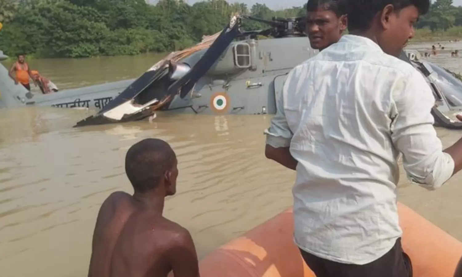 बिहार के मुजफ्फरपुर में बाढ़ के पानी में गिरा वायुसेना का हेलिकॉप्टर