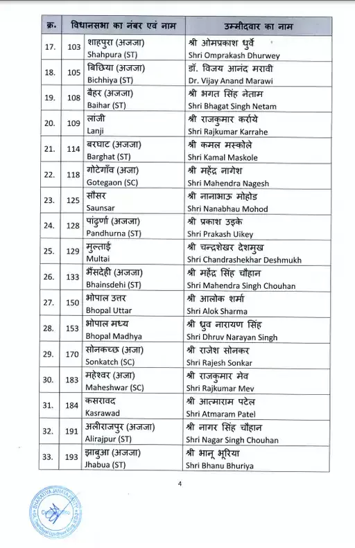 MP Election 2023 : भाजपा की पहली सूची जारी, सुमावली से एंदल सिंह, गोहद से लाल सिंह आर्य को मिला टिकट, देखें लिस्ट
