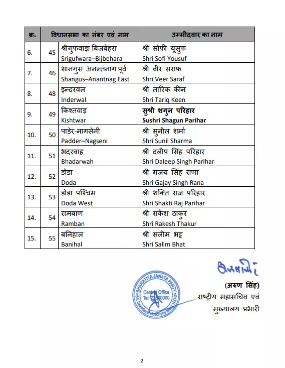 प्रथम चरण के लिए बीजेपी की दूसरी सूची :