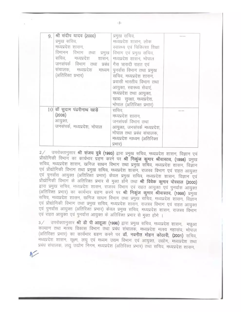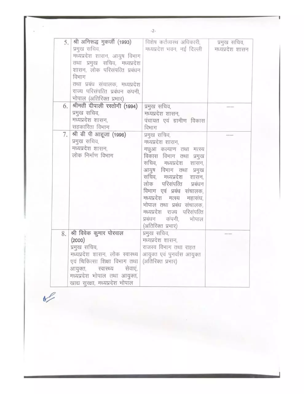 1993 बैच के आईएएस अनिरुद्ध मुखर्जी, आयुष विभाग प्रमुख सचिव के स्थान पर नई दिल्ली में मध्यप्रदेश भवन का विशेष कर्तव्य अधिकारी बना दिया गया है।