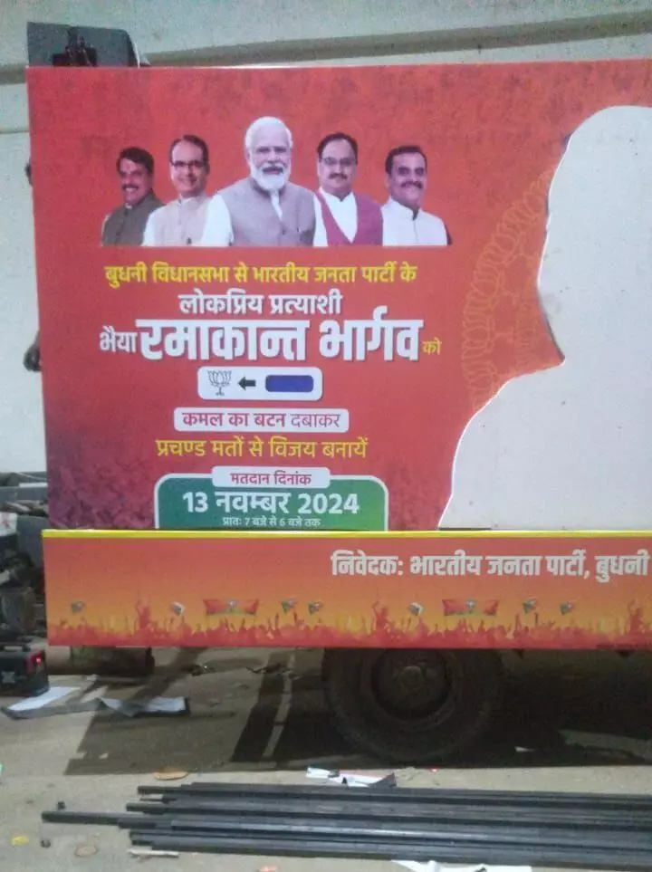 बुधनी विधानसभा उप चुनाव: पूर्व सांसद रमाकांत भार्गव के नाम की होर्डिंग पोस्टर तैयार, कांग्रेस बोली - कौन चला रहा है BJP