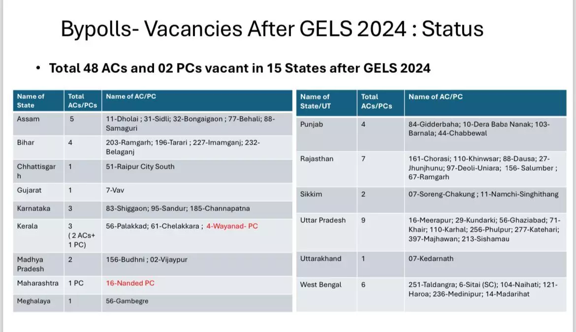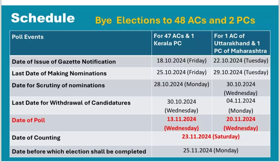By-Election Date: 15 राज्यों में 48 विधानसभा और 2 लोकसभा सीट पर उपचुनाव की तारीख घोषित