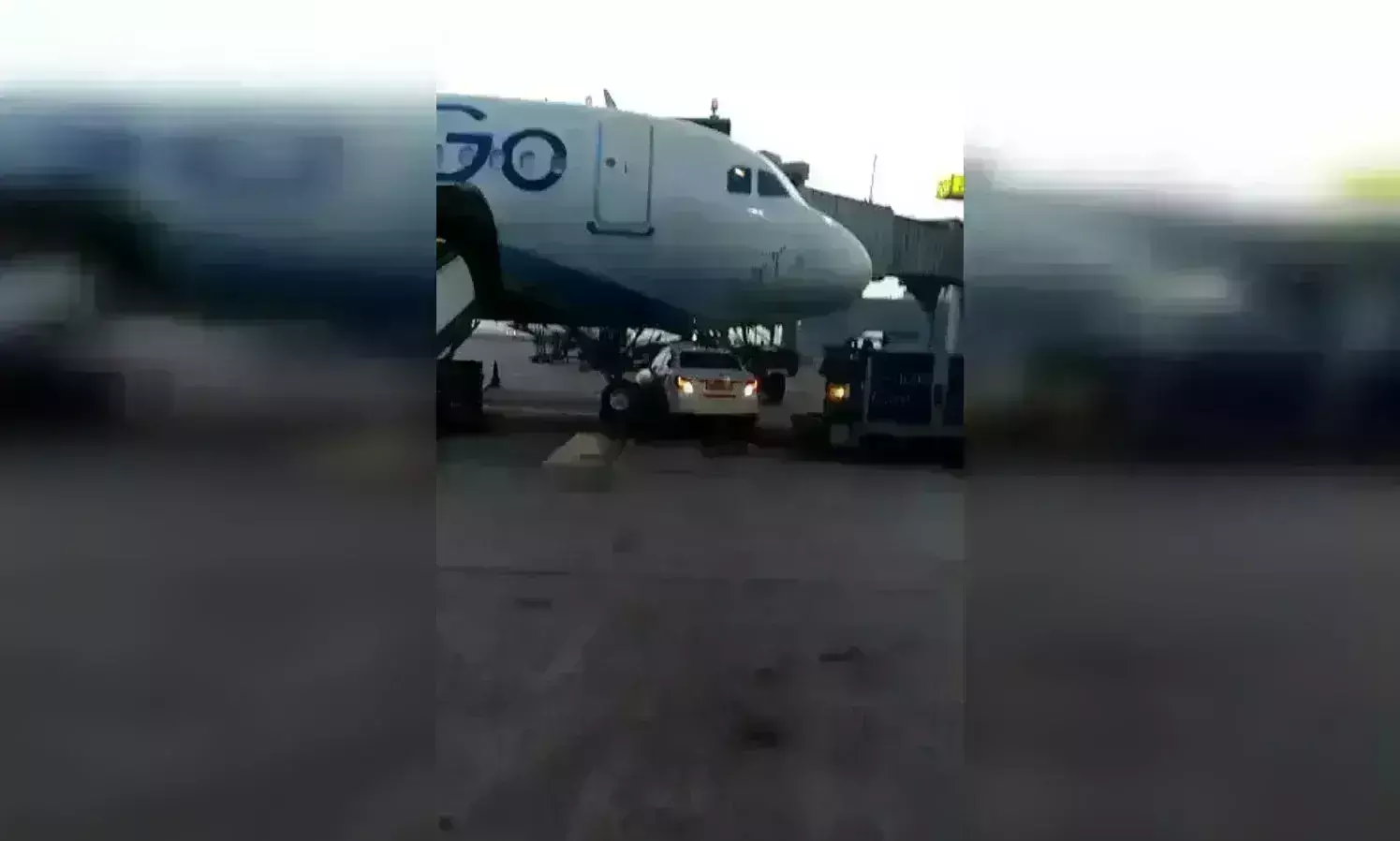 |नईदिल्ली। दिल्ली के इंटरनेशनल एयरपोर्ट पर आज एक बड़ा हादसा होने से बच गया। इंडिगो की एक फ्लाइट के नीचे अचानक से कार आ जाने के बाद एयरपोर्ट पर हलचल मच गई। इसका एक वीडियो सामने आया है। जिसमें ये कार विमान के नोज एरिया के पास खड़ी नजर आ रही है।