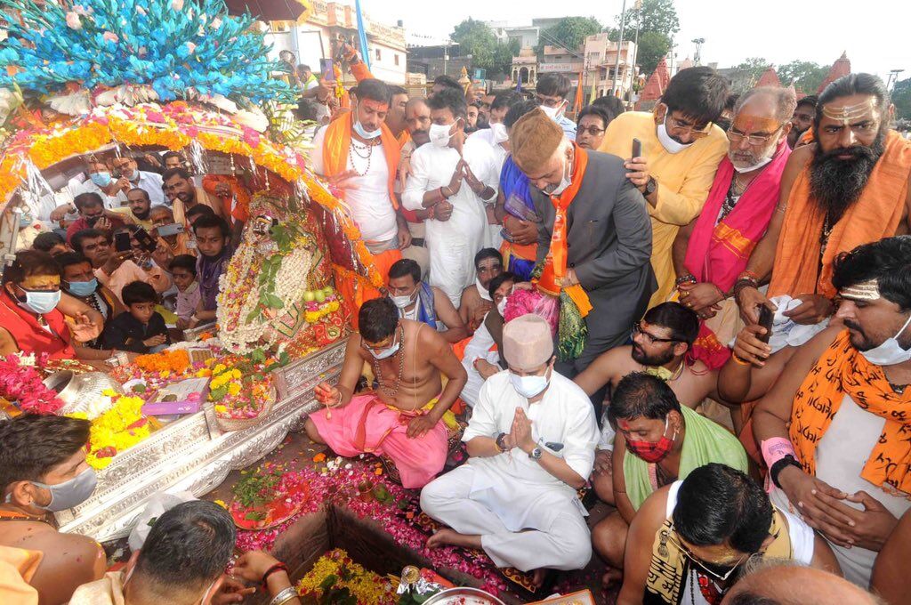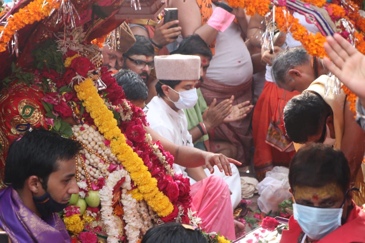 |- बाबा की इस सवारी में ज्योतिरादित्य सिंधिया ने पारंपरिक पूजा अर्चना की