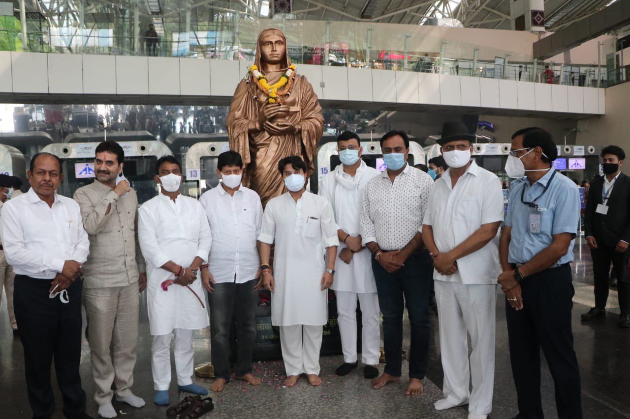 केंद्रीय नागरिक व उड्डयन मंत्री ज्योतिरादित्य सिंधिया सोमवार को इंदौर पहुंचे। इंदौर एयरपोर्ट पर केंद्रीय मंत्री श्रीमंत ज्योतिरादित्य सिंधिया ने अनेक मंदिरों और तीर्थ क्षेत्रों का पुन: निर्माण कराने वाली होलकर राजवंश की मां समान प्रजापालक देवी अहिल्याबाई होलकर की पुण्यतिथि पर उनकी प्रतिमा पर माल्यार्पण कर नमन किया। इस मौके पर इंदौर एयरपोर्ट पर भाजपा के वरिष्ठ नेताओं व जनप्रतिनिधियों ने उनका स्वागत किया।