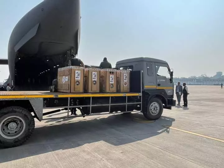 कूनो में बढ़ा चीतों का कुनबा, दक्षिण अफ्रीका से 12 चीते पहुंचे भारत, मुख्यमंत्री ने छोड़ा