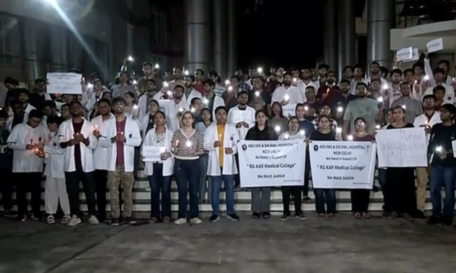 VIDEO | Members of Resident Doctors' Associations of various of Delhi hospitals stage a joint protest over the alleged rape and murder of a trainee doctor at Kolkata's RG Kar Medical Hospital.