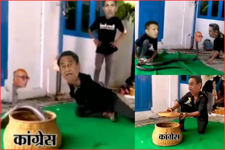 दिग्विजय, कमलनाथ और पटवारी के वायरल वीडियो में दिखाया गया है सांप, सपेरा और जमूरा