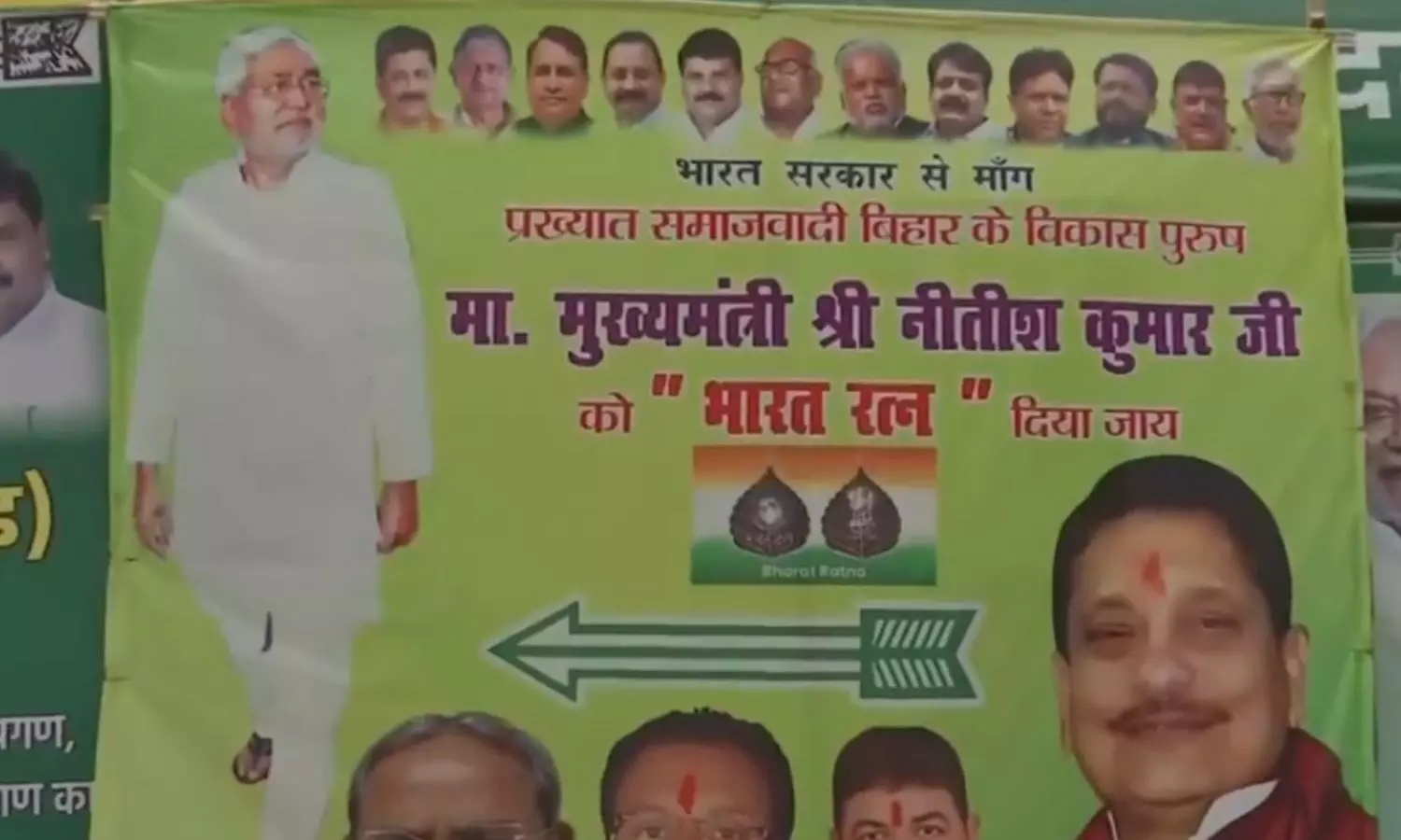 ये पोस्टर पटना में अलग-अलग चौक चौराहे पर लगाए गए हैं। पोस्टर में मुख्यमंत्री नीतीश कुमार की बड़ी तस्वीर के साथ लिखा है कि प्रख्यात समाजवादी बिहार के विकास पुरुष माननीय मुख्यमंत्री नीतीश कुमार को भारत रत्न दिया जाए। बताया जा रहा है कि यह पोस्टर जेडीयू के प्रदेश महासचिव छोटू सिंह की तरफ से लगाया गया है।