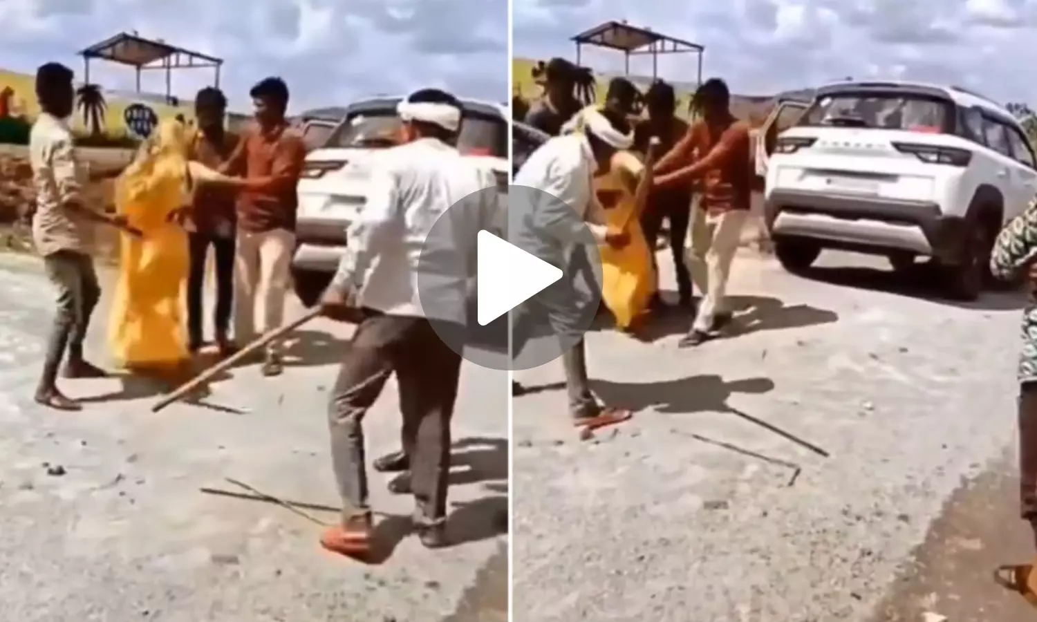 महिला को लाठी-डंडों से बेरहमी से पीटा जा रहा है, बीच सड़क में गांव के सरपंच और महिला के ससुराल वाले उसे पीट रहे हैं। खारू भील, जेठ बल्लू भील, सरपंच नूर भारिया, इंदर भील समेत अन्य पर FIR दर्ज कर ली गई है। मामला MP के धार का है। pic.twitter.com/UGDCHAvdnn