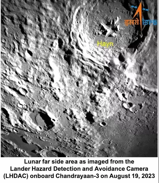 चंद्रयान ने सोमवार को चांद की नई तस्वीरें भेजी है। इसे लैंडर हैजर्ड डिटेक्शन एंड अवॉइडेंस कैमरा से कैप्चर किया गया है। यह कैमरा बोल्डर या गहरी खाइयों के बिना सुरक्षित लैंडिंग क्षेत्र का पता लगाने में मदद करता है।इसरो ने ये तस्वीरें जारी की। साथ ही कहा की अब 23 अगस्त को चंद्रयान के चांद की सतह पर उतरने का इंतजार है।