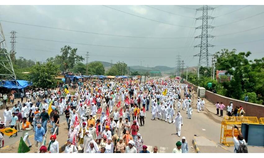 कृषि कानूनों के विरोध में धरना दे रहे हरियाणा और पंजाब के किसानों ने सात माह पूरे होने पर आज चंडीगढ़ स्थित राजभवन की तरफ कूच किया। किसानों को रोकने के लिए सुबह से ही हरियाणा व चंडीगढ़ पुलिस ने राजभवन की तरफ जाने वाले सभी रास्तों को सील कर रखा था।