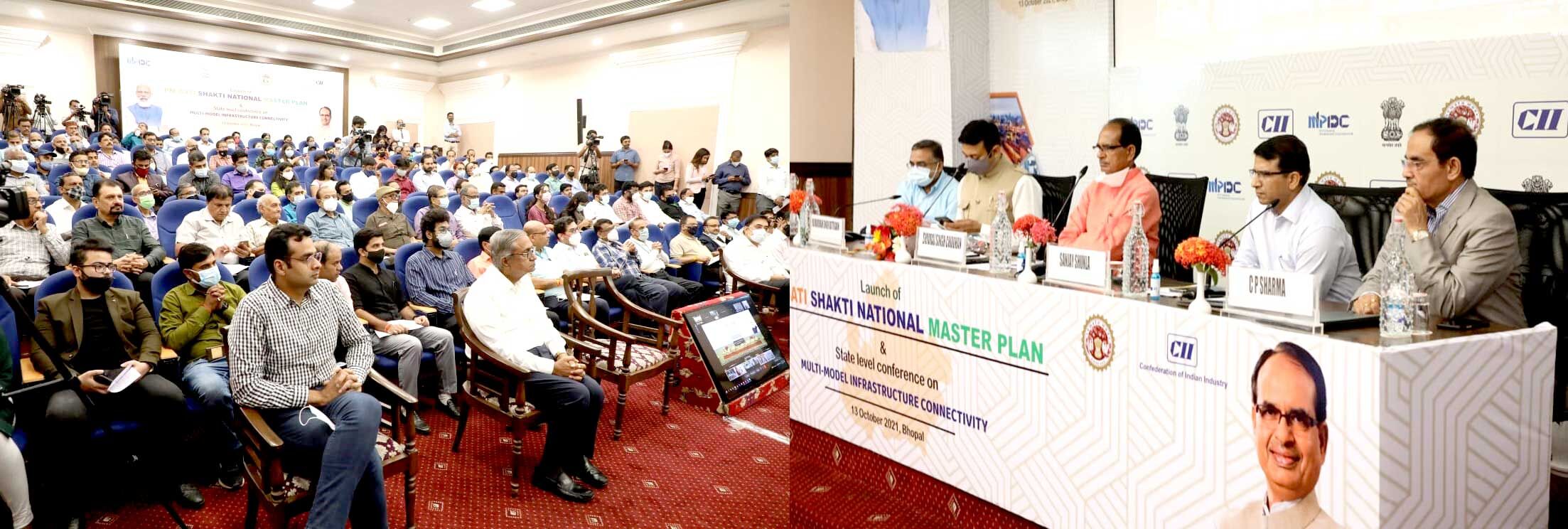 मुख्यमंत्री चौहान बुधवार को "प्रधानमंत्री गति शक्ति राष्ट्रीय मास्टर प्लान" के शुभारम्भ कार्यक्रम को संबोधित कर रहे थे। प्रधानमंत्री नरेन्द्र मोदी ने प्रगति मैदान दिल्ली में आयोजित कार्यक्रम में "प्रधानमंत्री गति शक्ति राष्ट्रीय मास्टर प्लान" का शुभारम्भ किया। कार्यक्रम में मुख्यमंत्री शिवराज सिंह चौहान भोपाल के मिंटो हॉल से वर्चुअली सम्मिलित हुए। उन्होंने मिंटो हाल में राज्य स्तरीय "कॉन्फ्रेंस ऑन मल्ट इन्फ्रा-स्ट्रक्चर कनेक्टिविटी" का शुभारंभ भी किया। मिंटो हॉल में आयोजित कार्यक्रम में औद्योगिक नीति एवं निवेश प्रोत्साहन मंत्री राज्यवर्धन सिंह दत्तीगाँव, प्रमुख सचिव उद्योग संजय शुक्ला सहित अन्य अधिकारी, उद्योगपति तथा व्यापार जगत के प्रतिनिधि उपस्थित थे।
