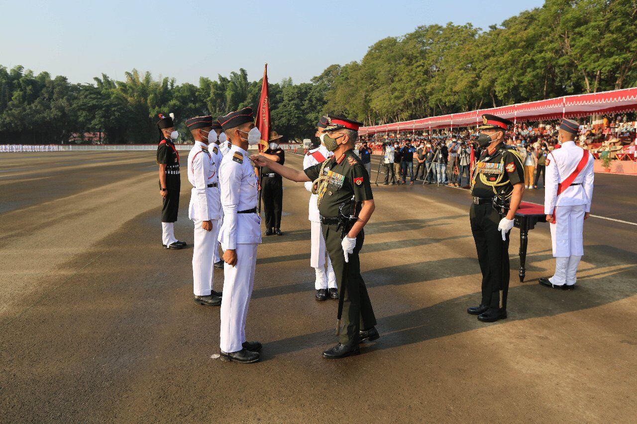 सेना प्रमुख ने इस तथ्य को भी साझा किया कि भारतीय सेना सरकार के 'आत्मनिर्भर भारत' के दृष्टिकोण में योगदान देने के लिए अधिकांश प्रौद्योगिकी और उपकरण भारतीय कंपनियों से खरीद रही है। कैडेटों को संबोधित करते हुए सेना प्रमुख ने युद्ध की बदलती प्रकृति से निपटने के लिए अकादमी से पास आउट होने के बाद भी व्यावसायिक शिक्षा के माध्यम से लगातार ज्ञान प्राप्त करने की आवश्यकता पर बल दिया। उन्होंने कैडेट्स का आह्वान किया कि वे युद्ध का चरित्र बदलने वाली उन्नत प्रौद्योगिकियों के बारे में नियमित व्यावसायिक शिक्षा के माध्यम से खुद को अपडेट रखें। चल रही थिएटर प्रक्रिया के बारे में विवरण साझा करते हुए उन्होंने कहा कि तीन सेनाओं में से हम अधिकांश मुद्दों को हल करने में सक्षम हैं। तीनों सेनाएं एकीकृत होने के बाद संयुक्त रूप से बड़ा बदलाव ला सकती हैं।