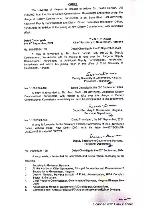 गौरतलब है कि पिछले लोकसभा चुनाव में भी चुनाव आयोग के आदेश पर सुशील सारवान को पंचकूला DC पद से हटाया गया था। अब ये DC कुरुक्षेत्र में तैनात हैं, जिसकी सीमा मुलाना विधानसभा क्षेत्र से लगती है।