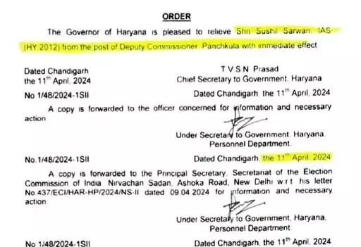 कांग्रेस के सदस्य सुरेश उनीसपुर द्वारा दी गई शिकायत में उल्लेख किया गया है कि पिछली लोकसभा चुनाव में भी चुनाव आयोग के आदेश पर सुशील सारवान को पंचकूला DC पद से हटा दिया गया था और अब वे कुरुक्षेत्र में तैनात हैं। शिकायत में यह भी कहा गया है कि सुशील सारवान स्थानीय लोगों पर बीजेपी को वोट देने का दबाव बना रहे हैं, जो नियमों का उल्लंघन है।
