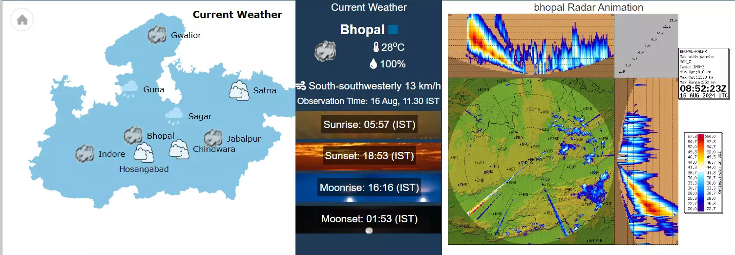 |MP August 16 Weather Update: भोपाल। मध्य प्रदेश में 16 अगस्त को भारी बारिश की चेतावनी जारी की गई है। प्रदेश में नया सिस्टम सक्रिय होने से बारिश से फिलहाल राहत नहीं मिलेगी। इसके अलावा 6 जिलों में बाढ़ की आशंका है। मौसम विभाग ने श्योपुर में अत्यधिक भारी बारिश का रेड अलर्ट जारी किया है। साथ ही 6 जिलों में मध्यम बाढ़ को लेकर भी अलर्ट जारी किया गया है। मौसम विभाग ने शुक्रवार को प्रदेश के एक जिले श्योपुर में अत्यधिक भारी बारिश का रेड अलर्ट जारी किया है। साथ ही राजगढ़, उत्तर नीमच, पूर्व मंदसौर, मध्य शिवपुरी, दक्षिण बालाघाट और दक्षिण सिवनी में मध्यम बाढ़ को लेकर भी अलर्ट जारी किया गया है।