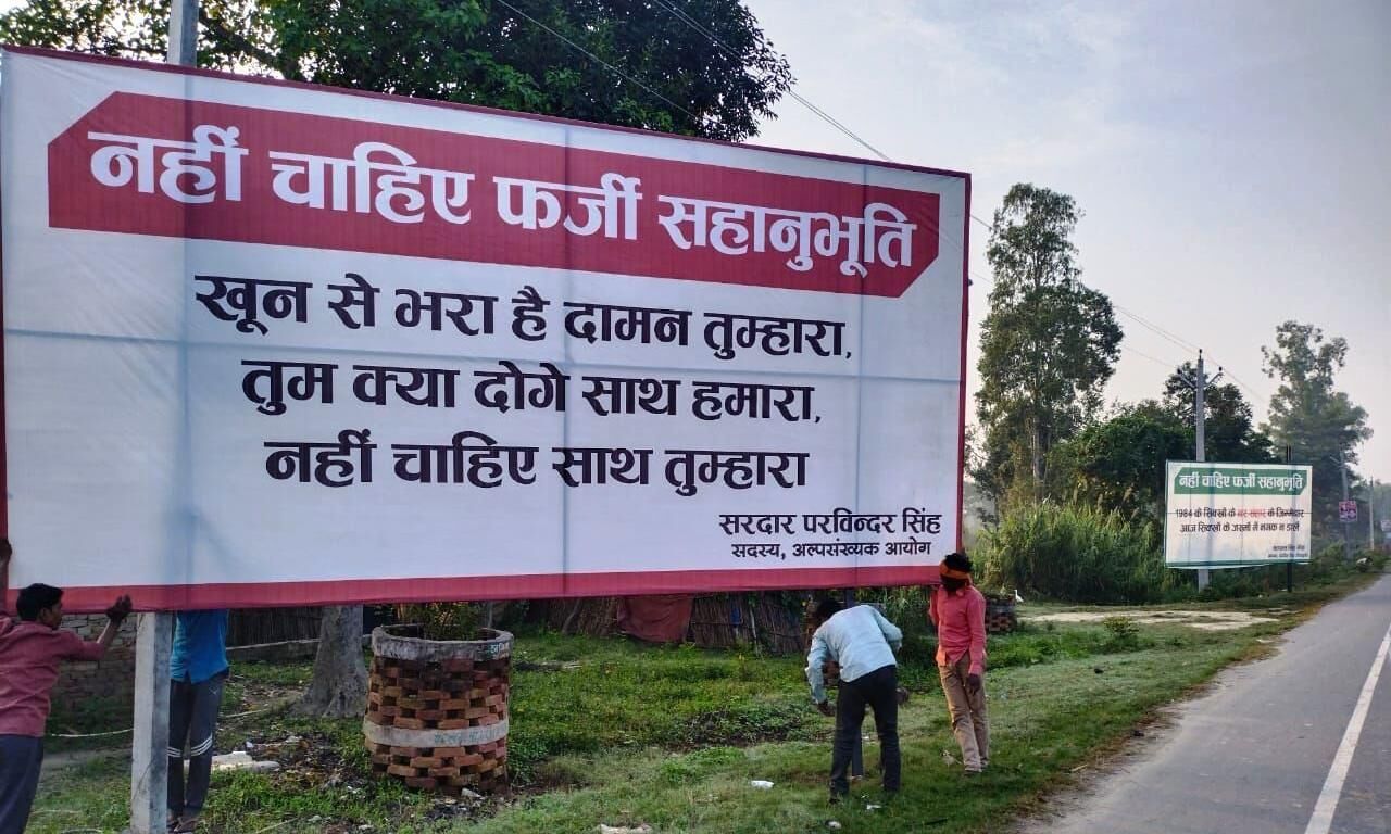 लखीमपुर घटना पर सिखों ने होर्डिग लगाकर कांग्रेस को याद दिलाया '1984 का दंगा'